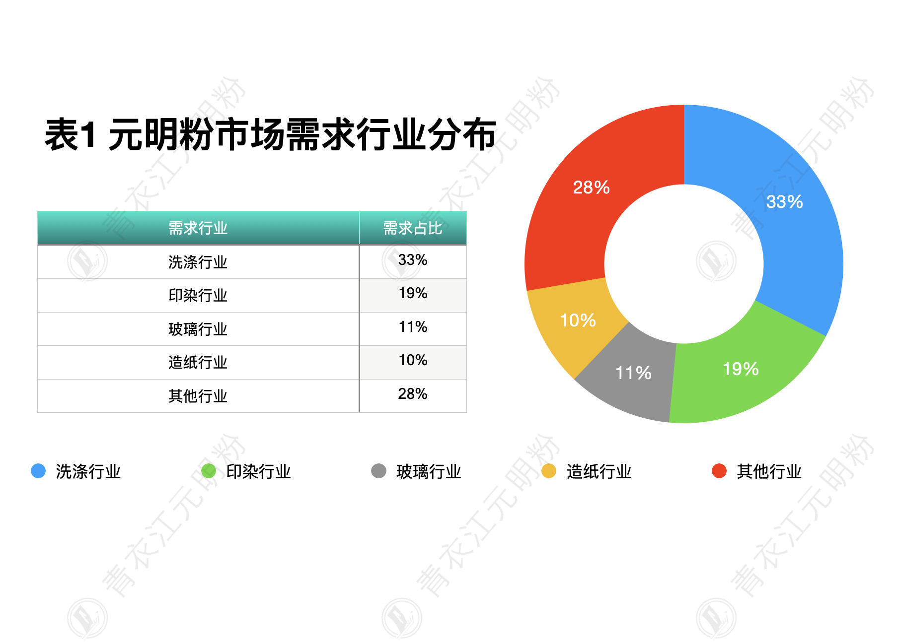 根據國家統計局和中國化工信息中心提供的相關資料整理,我們制作了元明粉的下游工業大致分布,如表1所示。